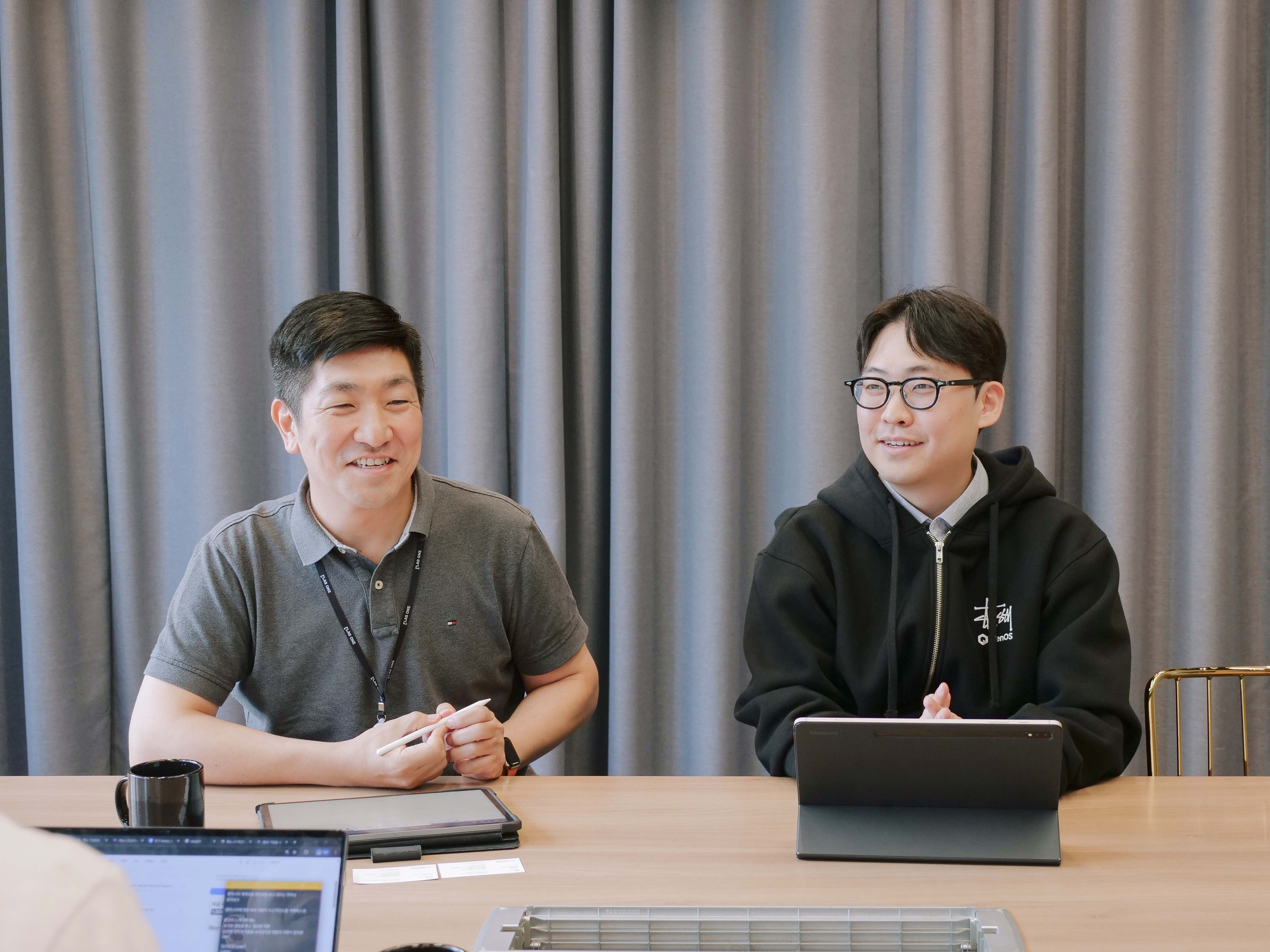 경영지원실 실장 진방현(좌), SW엔지니어링팀 이사 이강산(우)