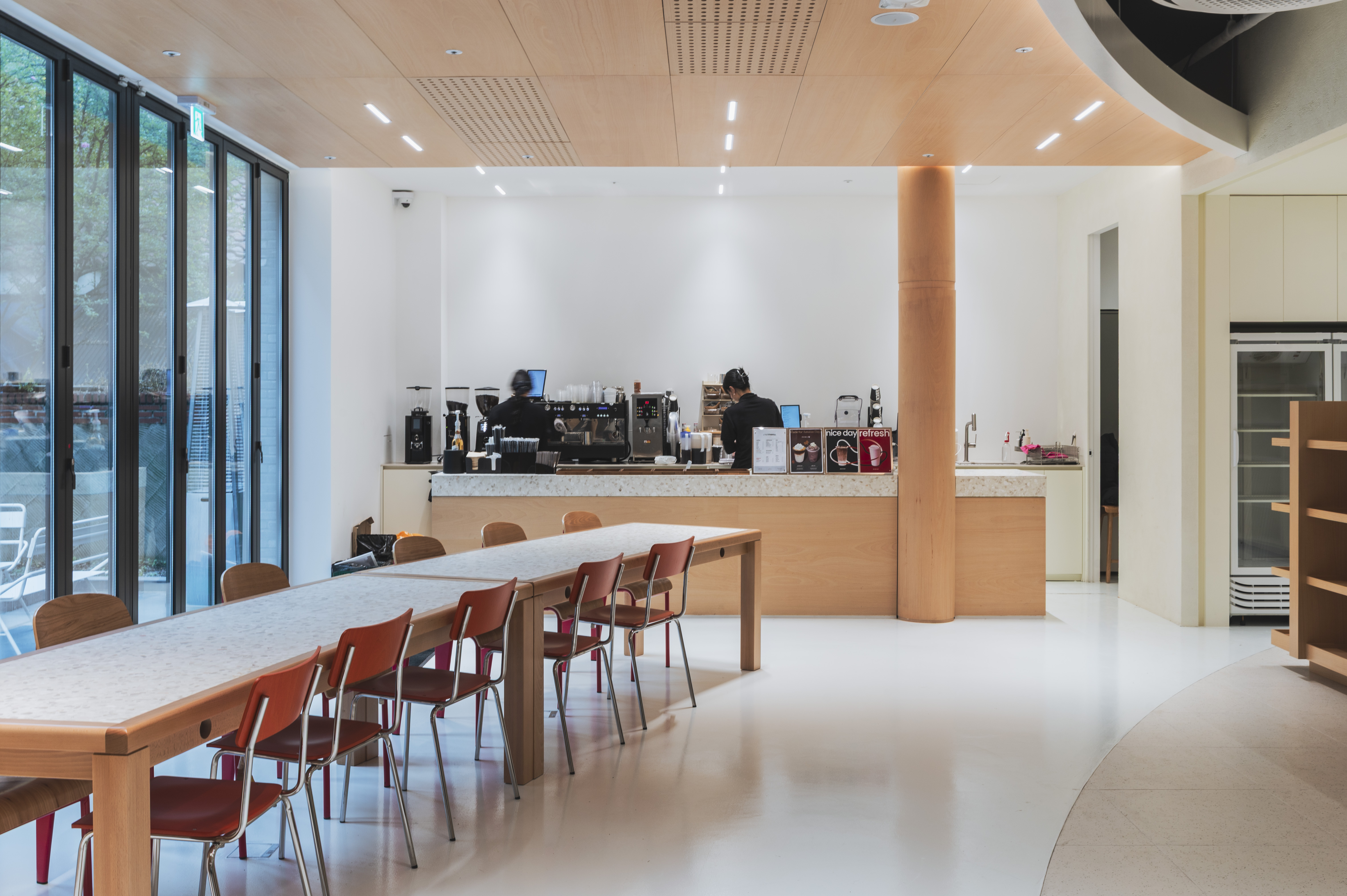 잘 먹는 데도 진심이라 무한 리필되는 편의점과 20여 개 메뉴를 갖춘 사내 카페 ‘어서오구’도 마련해 뒀어요. 점심시간에는 메뉴를 선택할 수 있는 케이터링이 제공되고요. 출근하면 돈 쓸 일이 없어서 교통카드만 들고 출근하는 분들도 많을 정도예요.