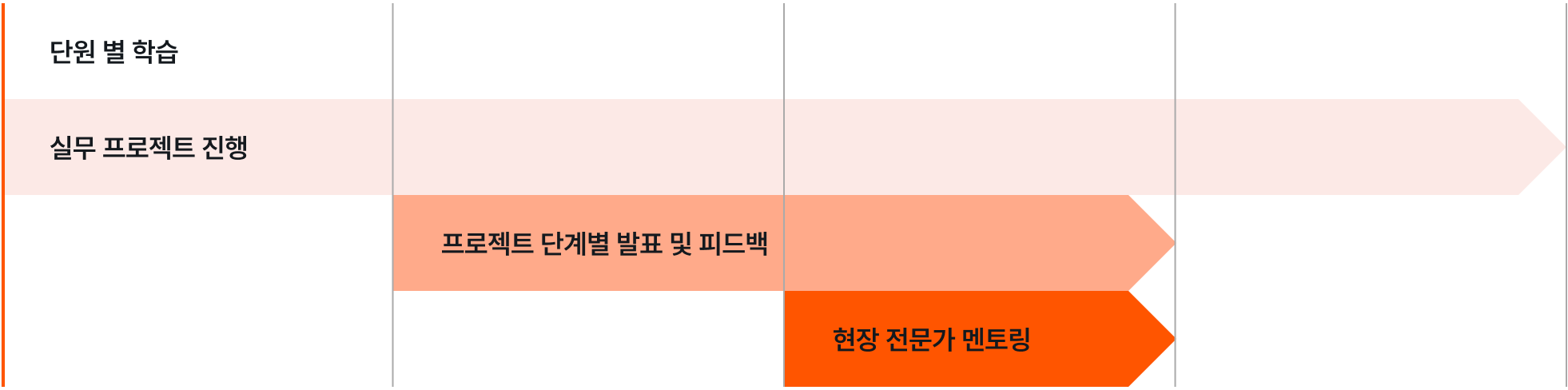4주간의 기업 기술과제 수행(인턴십)을 통해 단기로 실무 역량을 강화합니다.