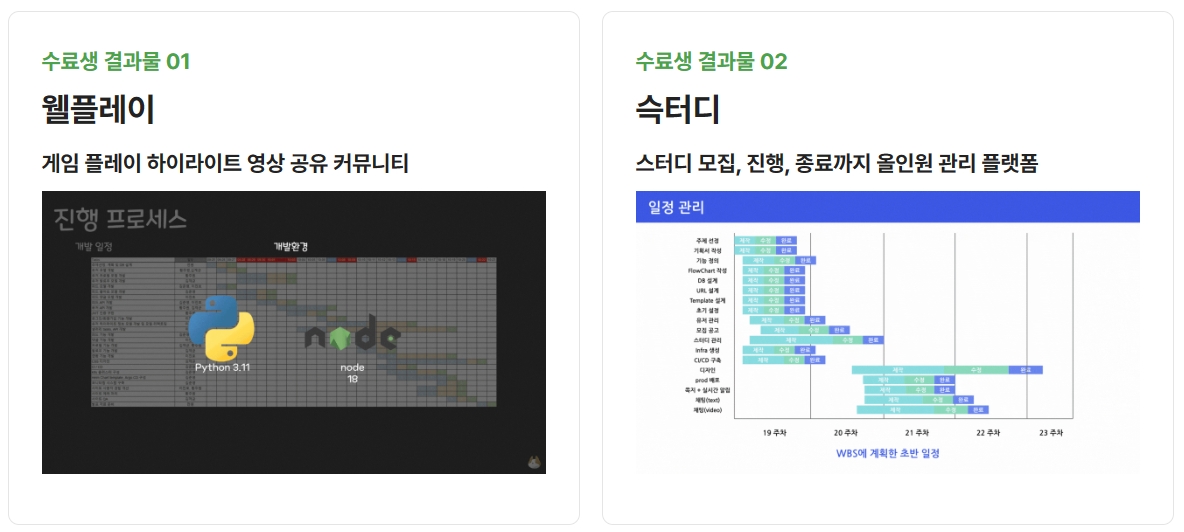 • 수료 후 멋쟁이사자처럼과 함께하는 기업들을 통해 취업 연계를 지원
