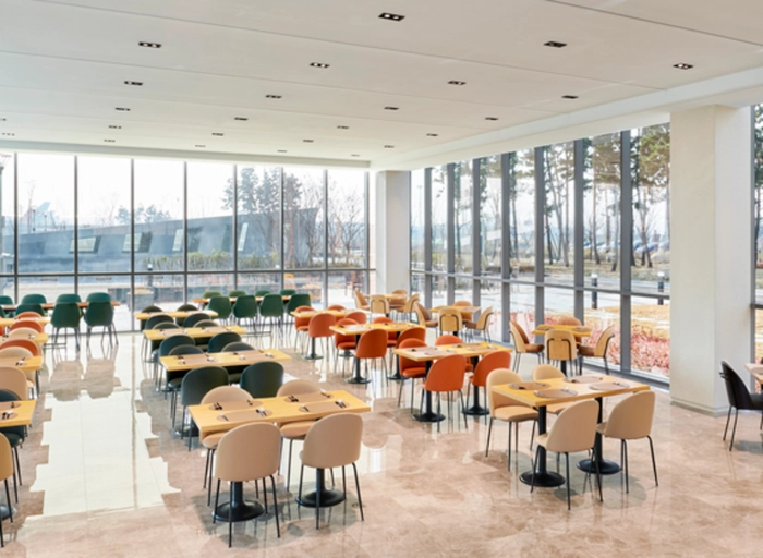360개 객실과 올데이 다이닝 '라 퀴진' 레스토랑, 소믈리에가 엄선한 샴페인을 즐길 수 있는 '바 T2'를 갖추고 있습니다.