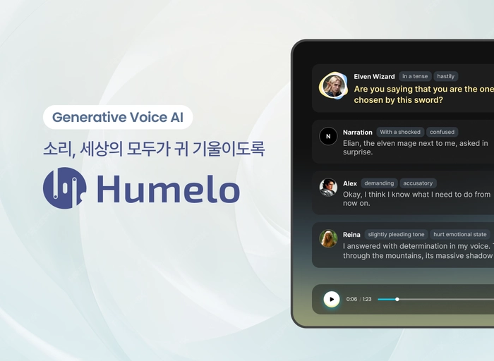 이러한 기술력을 바탕으로, 당사는 이미 여러 파트너와 협업하며 시장에서 확실한 존재감을 보여주고 있습니다. SM엔터테인먼트와 함께 만든 AI 아티스트 ‘나이비스(nævis)’가 가요계에 신선한 충격을 던지는 등, 기술을 활용해 새로운 콘텐츠와 사용자 경험을 만들고 있다는 점이 휴멜로의 강점입니다. 2018년 설립 이후 35억 원 이상의 투자를 유치하고, 각종 대회와 공모전에서 입상한 기록들은 당사가 단순한 신생 스타트업이 아닌, 시장과 투자자들이 주목하는 혁신 기업임을 뒷받침합니다. 언론 역시 휴멜로를 ‘AI 음성 분야의 게임 체인저’로 소개하며, 앞으로 어떤 변화를 이끌어낼지 큰 기대를 보내고 있습니다.