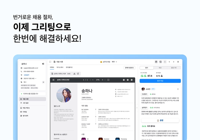 두들린은 대한민국 1등 채용 솔루션 ‘그리팅’을 운영하며 채용 시장의 새로운 혁신을 이끌고 있어요.