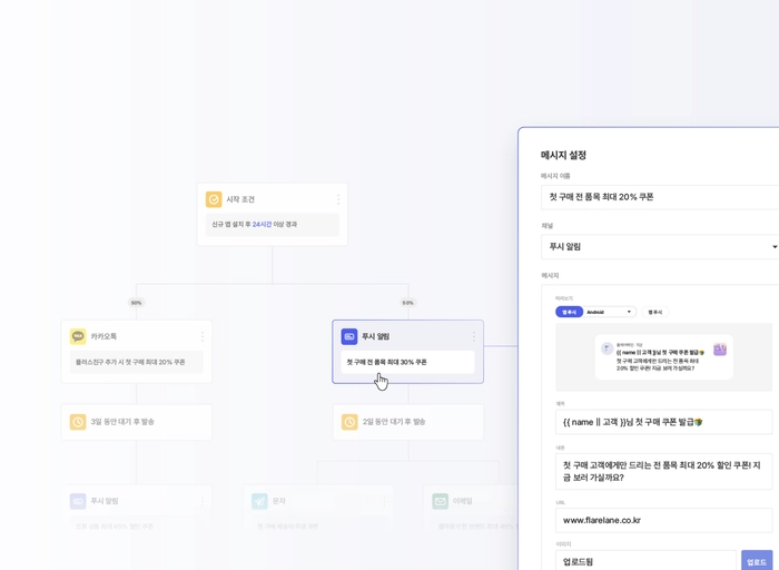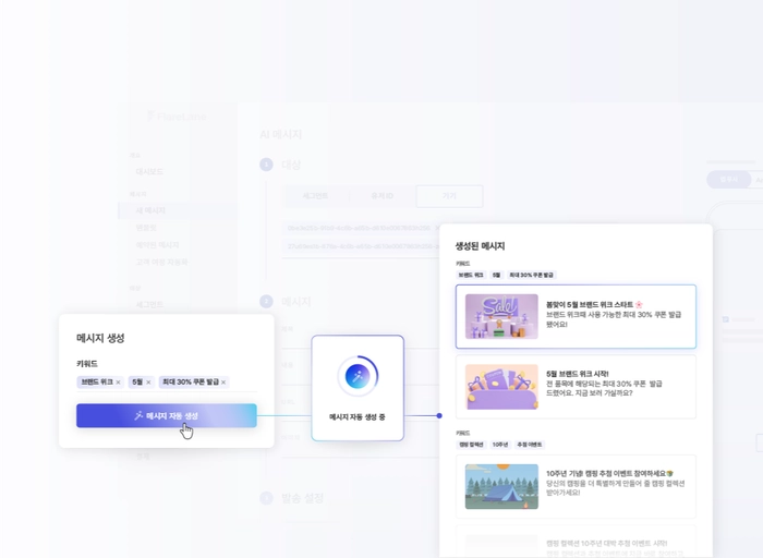 저희는 고객 여정 기반 차세대 CRM 마케팅 솔루션 '플레어레인'을 운영하고 있습니다.