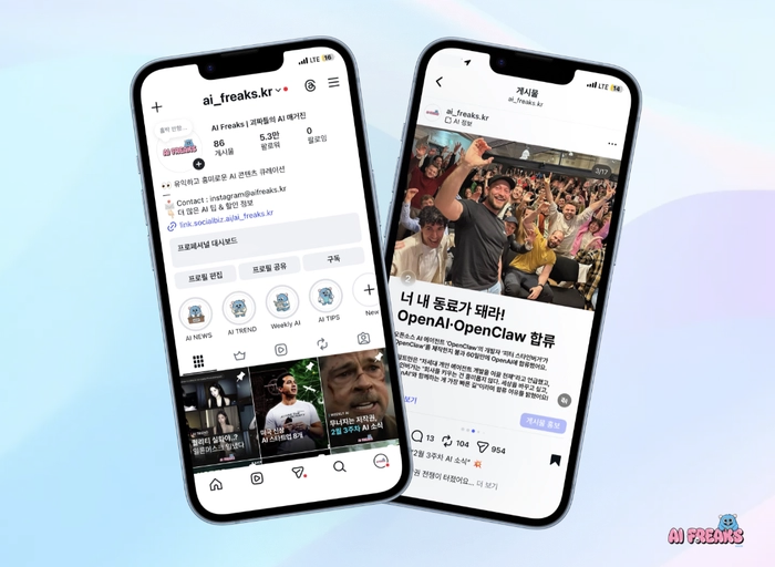 'AI Freaks | 에이아이프릭스'는 AI와 관련된 소식 / 정보 / 활용법을 전하는 AI 전문 인스타그램 채널입니다.